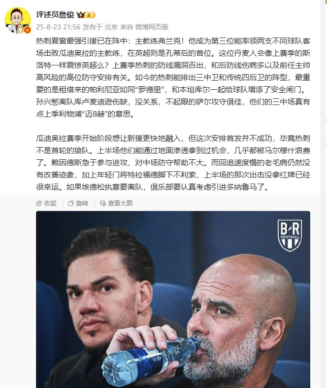 詹俊:“热刺夏窗最强引援已在阵中:主教练弗兰克!他成为第三位能率领两支不同球队客场击败瓜迪奥拉的主教练,在英超则是孔蒂后的首位。这位丹麦人会像上赛季的斯洛特一样震惊英超么?上赛季热刺的防线漏洞百出,和后防线伤病多以及前任主帅高风险的高位防守安排有关。如今的热刺能排出三中卫和传统四后卫的阵型,最重要的是租借来的帕利尼亚如同“罗德里”,和本坦库尔一起给球队增添了安全闸门。孙兴慜离队库卢麦迪逊伤缺,没关系,不起眼的萨尔攻守俱佳,他们的三中场真有点上季利物浦“迈8赫”的意思。